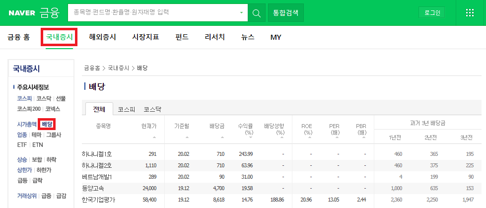 → 우리나라 전체 종목 배당수익률 평균은 2% 내외
