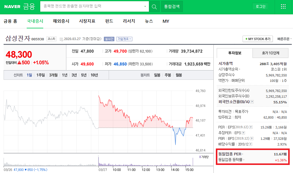 ※ 네이버 금융: 동일업종 다른 종목들 PER도 확인 가능