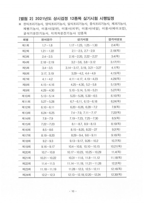 2021년 지게차 실기시험 일정입니다