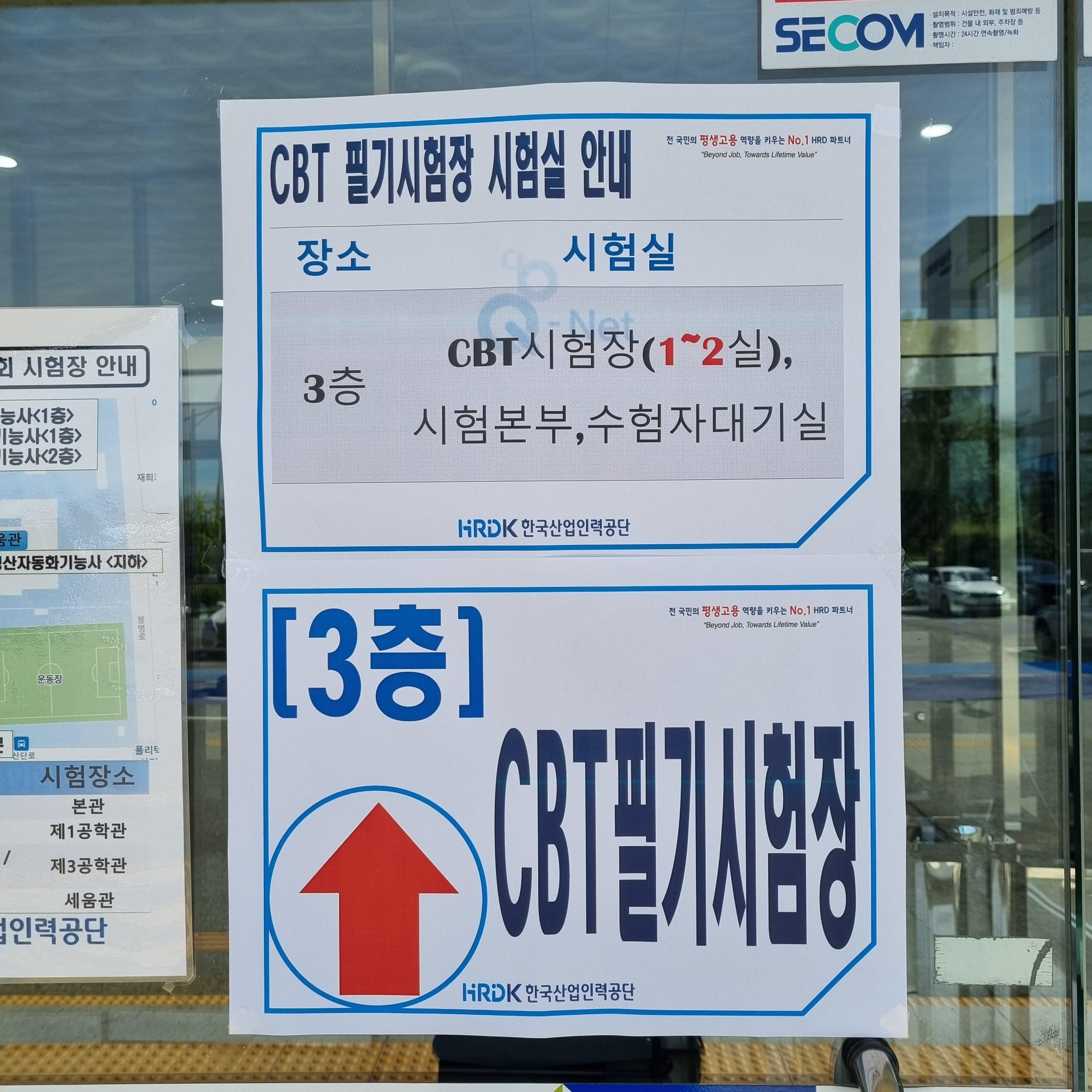 본부 입구에 CBT필기시험이라고 쓰여있어요