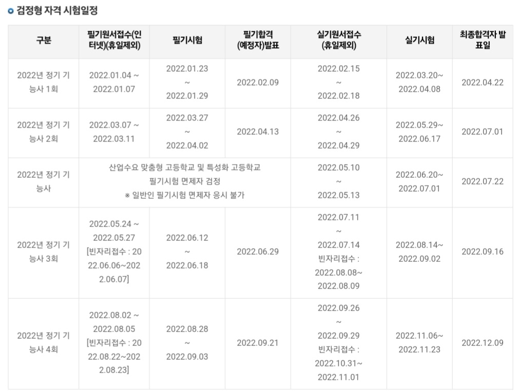 ※ 2022년도 기사/산업기사 제1회 및 2회는 분리시행, 제3회 및 4회는 통합시행되며,