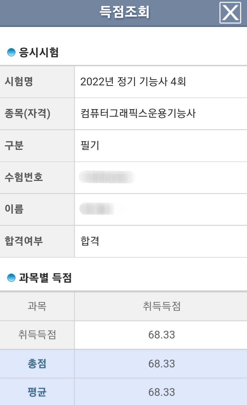 다행히 68.33점으로 합격 !