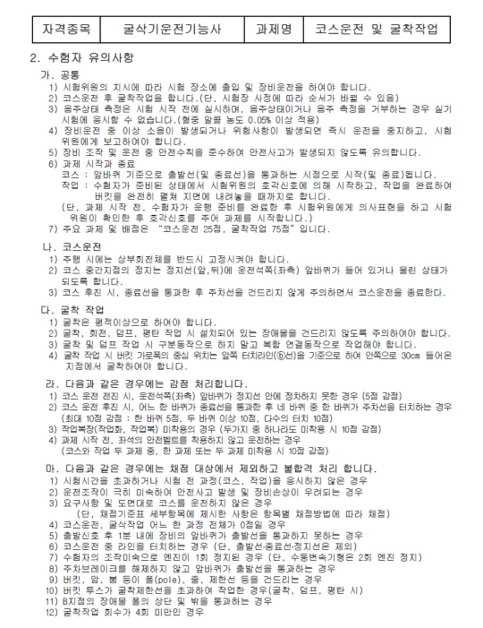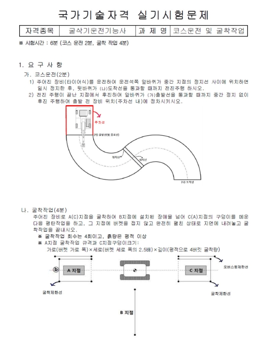 - 필기 : 굴착기 조종, 점검 및 안전관리
