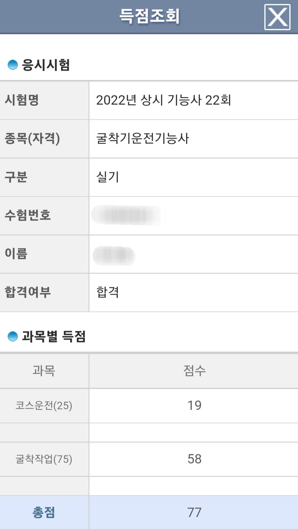 ▷ 지게차는 21년도에 최종합격을 했고 굴착기 실기만 남아있었어요.