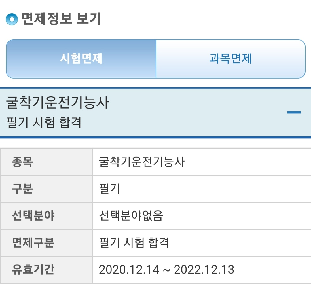 굴착기 필기 유효기간이 얼마 남지 않았다는 것을