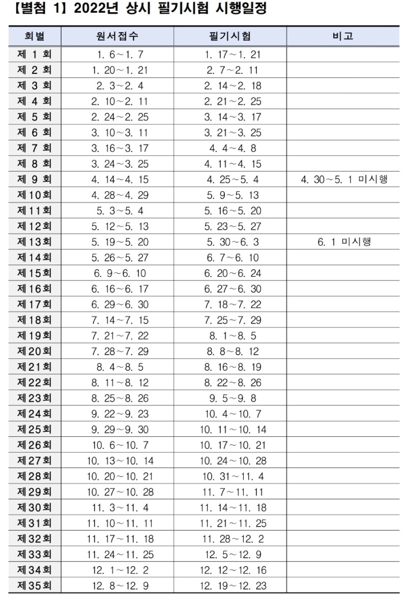 - 필기시험 합격예정자 및 최종합격자 발표시간은 해당 발표일 09:00임.