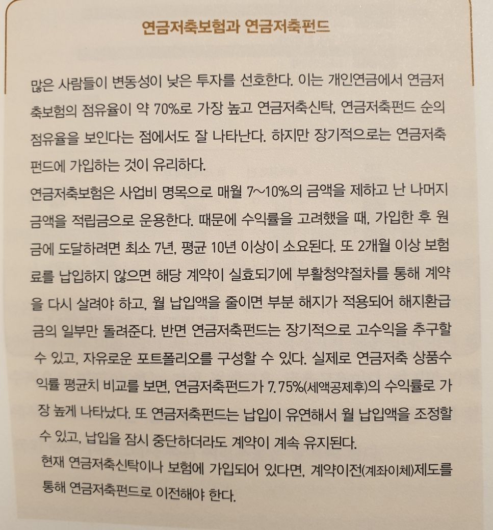 - 개인연금저축펀드: 수수료가 가장 저렴하고 다양한 투자가 가능하다.