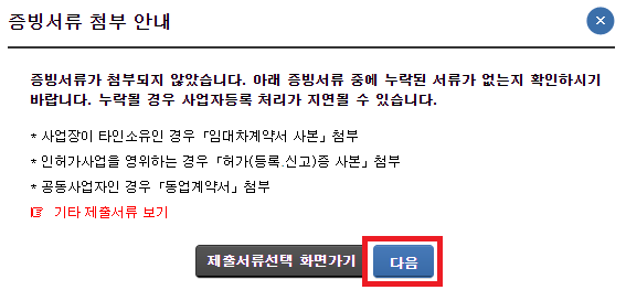 본인에게 해당사항이 있는 서류는 제출하시면 됩니다. 하지만 이제 스마트스토어를 시작하려는 저와 같은 초보분들, 혼자 집에서 해보려는 한국인이라면 제출할 서류가 없습니다. 그렇기때문에, 바로 다음 버튼 클릭해주세요.