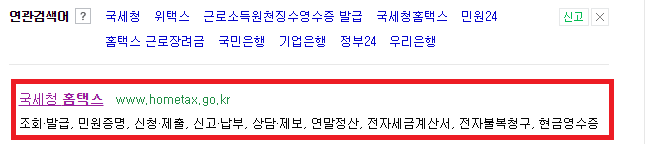 검색에서 나온 '국세청 홈택스' 사이트를 클릭합니다.