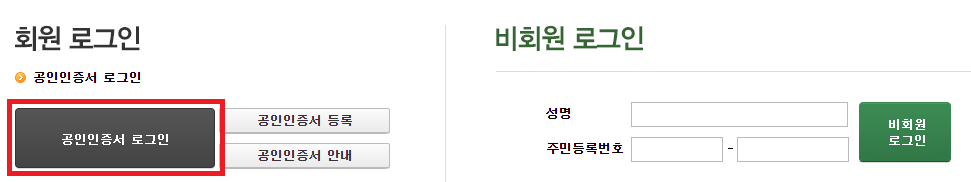 회원이 아닌 경우에는 회원가입부터 해주시고 공인인증서 등록도 함께 해놓습니다. 사업자등록을 진행하기 위해서는 공인인증서를 가지고 있어야 합니다.