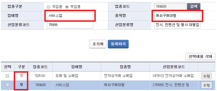 [부업종 '해외구매대행' 코드 입력하는 법]