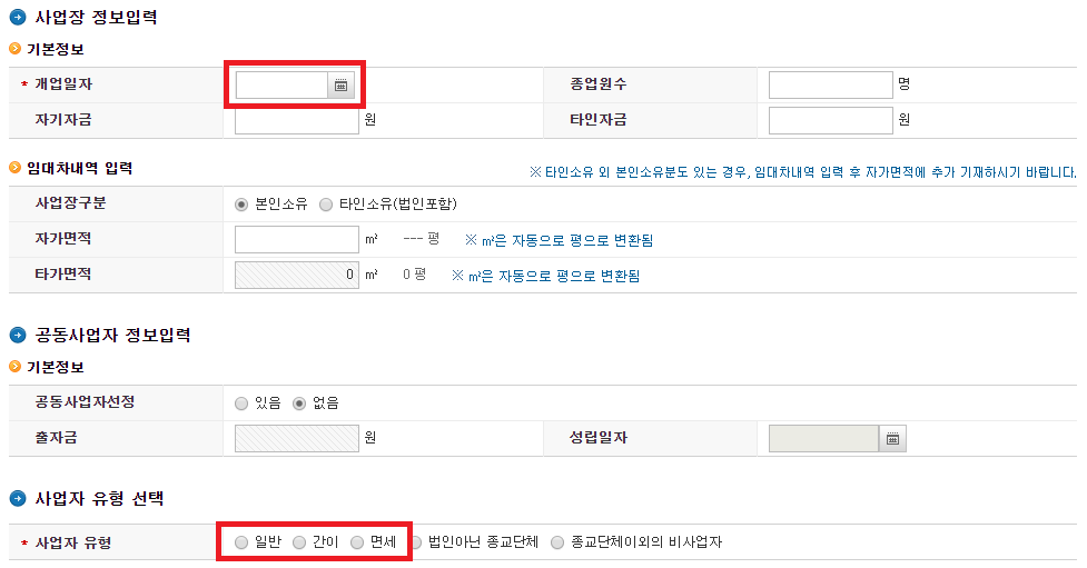 ▶ 개업일자: 사업자등록 전에 개인판매자로서 스마트스토어에서 매출이 발생하신 경우는 스토어 개설일자를 적어주시고, 이제 시작하려고 하시는 초보분들은 사업자등록 신청일(오늘 날짜)로 입력하시면 됩니다.
