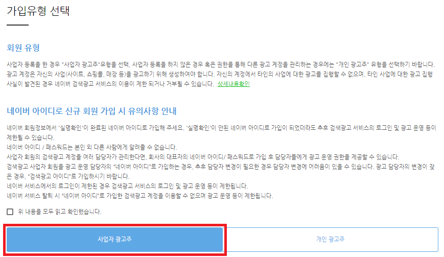 ※ 사업자등록을 한 분들은 사업자 광고주로 가입을 합니다.